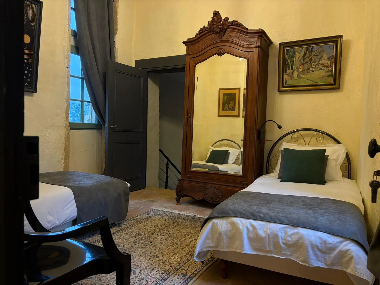 Les cinq chambres du Château de Rancé offrent chacune une ambiance unique, mêlant charme d’antan et confort moderne. Décorées avec soin, elles invitent à un séjour raffiné dans un cadre authentique.